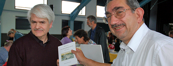 Parmi les invités, on n’oubliera pas de signaler aussi la présence du talentueux poète et troubadour languedocien Claude Marti, chantre de la terre occitane, avec le peintre Paul Moscovino, illustrateur de son dernier ouvrage.