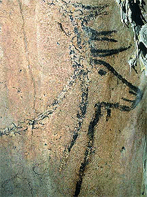 | Bison marqué d’un signe barbelé. Salon Noir Détail du Panneau 6 - ©Sesta | Jeudi dernier, Augustin Bonrepaux, Président du Conseil Général de l’Ariège a présenté au cours d’une conférence de presse organisée à la Maison des Pyrénées à Toulouse, le programme des manifestations commémorant le centième anniversaire de l’authentification des peintures et des gravures des grottes de Niaux et de Bédeilhac.