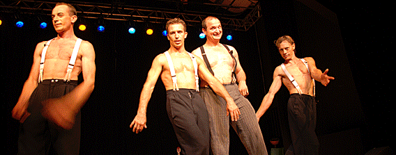 Quatre hommes sur scène, Dangelo, Jack, Dimitri et Octave. Les trois premiers, gymnastes, jongleurs, défiant la gravité et, le quatrième larron, le percussionniste se jouant des sons et des bruits avec toutes sortes d’instruments... suisses!