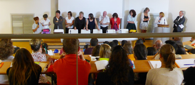 Dans l’amphithéâtre, les étudiants et élèves reçoivent, en cette première matinée de rentrée, les premières directives sur les valeurs de professionnalisme, de solidarité et d’humanisme. Deux axes forts sont aussi évoqués : qualités pertinentes pour soigner, mais aussi respect et savoir communiquer. Avoir un raisonnement clinique, une traçabilité auprès des patients et continuités des soins.