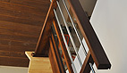 Bertrand Duchazaud (entreprise Sambeat a Miramont de Comminges) présente un garde-corps d’escalier extérieur en hêtre thermotraité aux formes très contemporaines.