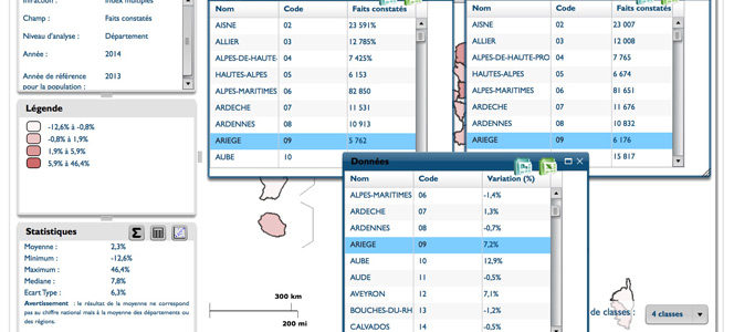 En photo ci-dessous: tableau de gauche, données brutes en 2013 (5762 faits constatés), à droite le tableau livre les données brutes en 2014 (6176 faits constatés), au milieu, la variation des données brutes entre 2013 et 2014 (+7,2%)