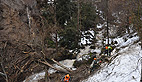 «Nous avons été sollicités par le maire, car un glissement de terrain sur plus de 30 mètres a entrainé des arbres dans le ruisseau qui créent des désordres et menacent ce pont situé sur la route des Corniches.