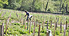 Hélène se projette déjà en 2014, date de la première récolte de raisin de table et en 2015 au moment des premières mises en bouteilles… en attendant il faut désherber la parcelle à la main, le début du rêve passe par là.