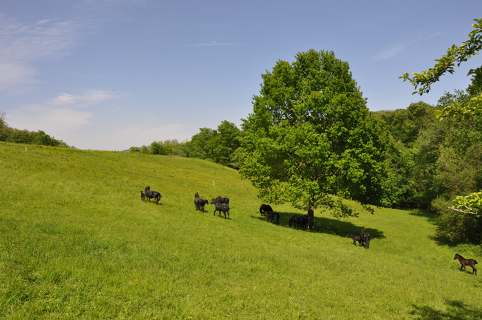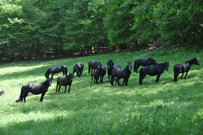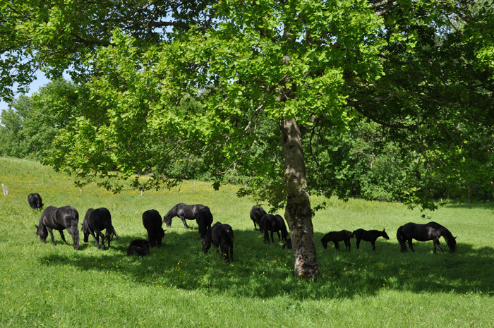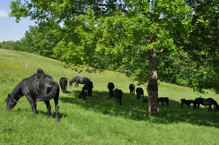 «Tous sont inscrits au Stud-book (livre généalogique de la race Mérens) je prête gracieusement mes hongres à des centres de loisir pendant l’été pour les faire travailler et je passe du temps avec mes chevaux car tous les animaux sont dociles et intelligents si on leur accorde du temps»