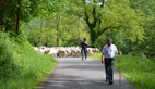 En ce dimanche ensoleillé, Vincent a mené ses 400 bêtes jusqu’en Vallée du Ribérot, au cœur du Biros. Dans un décor non moins somptueux, une balade au rythme du troupeau entre paysages verdoyants et rivières sauvages, suivis seulement par quelques passionnés fidèles.