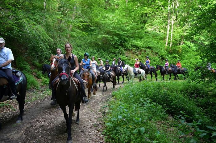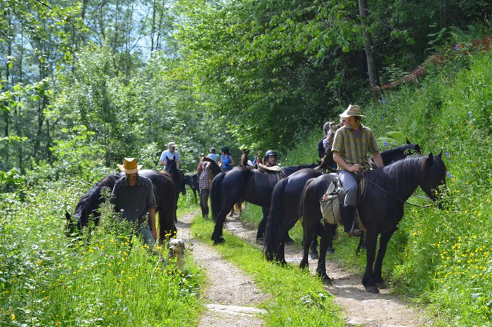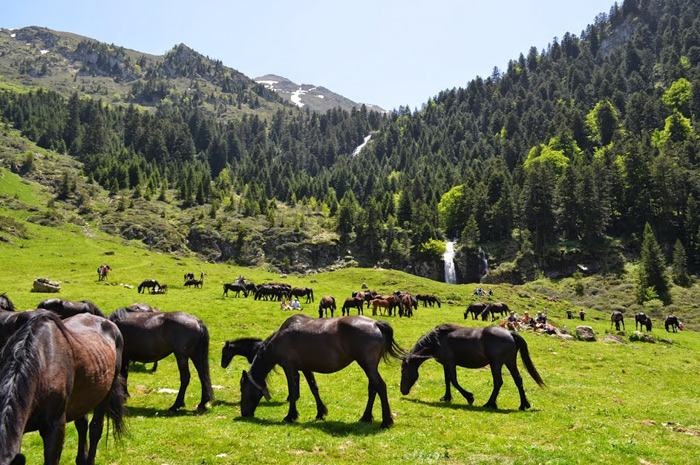 Transhumance avec les chevaux de Mérens en vallée de Bethmale