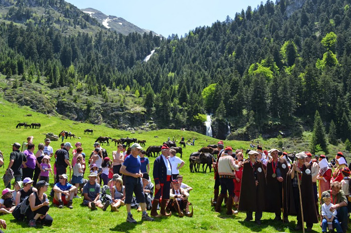 L'authenticité de cette pratique ancestrale qu'est la transhumance confère également un attrait particulièrement fort pour les randonneurs. Dans le cirque de Campuls, situé à 1400 mètres d'altitude, au milieu des brebis, vaches et chevaux, avec la cascade en toile de fond, ils ont pu admirer les tenues et danses folkloriques des membres de la Confrérie des Pastous, qui intronisaient ce jour-là un nouveau berger, Yannick Veper.