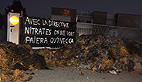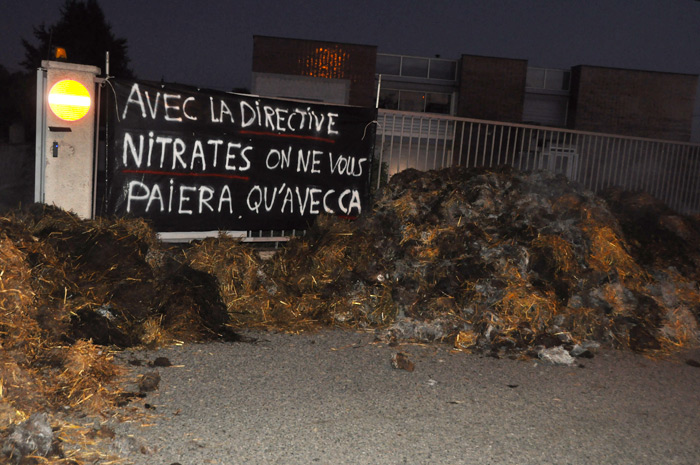 Aux alentours de 5h30 du matin une trentaine d’agriculteurs de basse Ariège (JA et FDSEA) ont élevé des murs de paille sur les grilles de la sous-préfecture et déversé quatre remorques de fumiers devant le trésor public. Sur les banderoles il était question de zones vulnérables et de directive nitrate. Les services de la mairie de Pamiers ont mobilisé dès 7h les engins pour dégager la voirie et libérer la sous-préfecture de ces balles de paille de 500kg chacune.