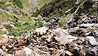 Les bêtes ont déroché à 2000 m d’altitude et ont dévalé sur plusieurs centaines de mètres dans les couloirs d’éboulis sur une pente escarpée jusqu’au torrent. De part et d’autre les carcasses enchevêtrées de plusieurs dizaines de brebis en partie dévorées par les vautours dans une odeur pestilentielle. Le tout dans un paysage de carte postale.