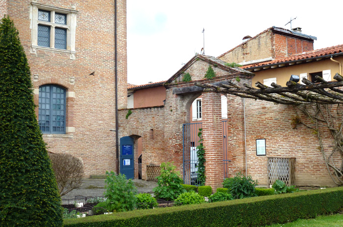 La rue, anciennement nommée rue du four, près de la fontaine de la Tausse, desservait l’hôtel et son moulin pastelier. Empruntant la rue, les uns venaient moudre les précieuses feuilles qui donneraient la teinture bleue, et les autres, comme Marthe et Madeleine, filles de Pierre Garrigues, accédaient en calèche dans la cour de l’hôtel par un porche élégant. Elles devaient profiter de l’esthétique du jardin à la française et il est possible que Marthe et son futur époux, Jean-Antoine d’Ardouin, oublièrent les heures à contempler les méandres de l’Hers.