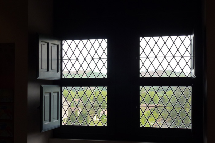 Une tour abrite l’escalier à vis qui dessert les différentes pièces, vastes et lumineuses. Gouvernantes et major d’hommes devaient s’activer à entretenir les parquets et sols carrelés, nettoyer les carreaux des fenêtres à meneaux, entretenir le feu dans les larges cheminées de brique.