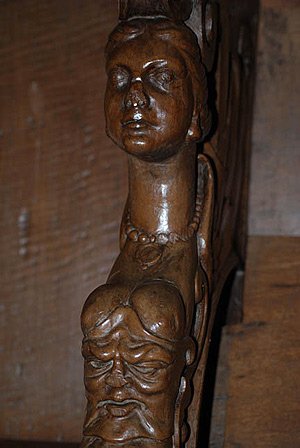 Aujourd’hui, dans le chœur s’ouvrent en cercle les stalles. Les accoudoirs sont de toute beauté, mêlant tantôt un profil féminin à des apparences animales et inversement. Un buste de femme dénudé repose sur une tête d’homme grimaçant. Le bas du corps s’anime de sabots, de pattes de lion ou de canard.