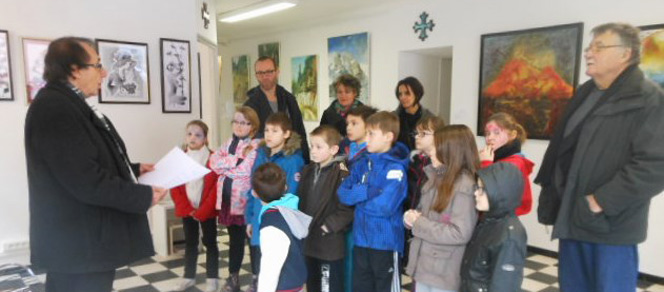 Les enfants âgés de 7 à 10 ans ont découvert au travers des œuvres exposées, des techniques artistiques variées expliquées par les 3 artistes présents.