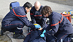 Ce matin, nous avons suivi Sandra, Cyril et Sébastien. L’équipe doit prendre en charge un jeune homme qui a fait une chute de trois mètres. Un exercice de simulation collant au plus près de la réalité.