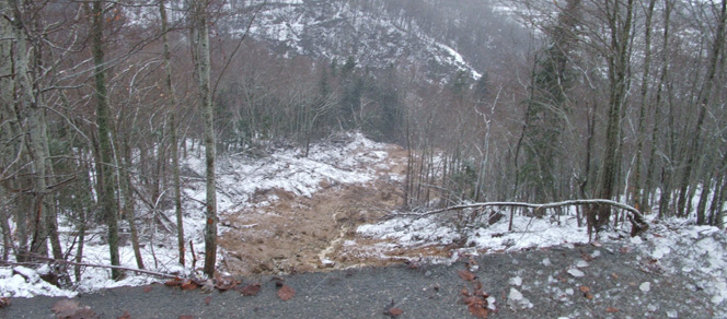 «L’eau a jailli et après avoir rencontré la roche et la terre, a tout emporté sur son passage» témoigne Dominque Fourcade. Impressionnante par sa taille et son ampleur, la coulée d’eau a raviné le bord de la route (elle est passée par-dessus) menant à Bonascre, emportant et déracinant, par sa violence, nombre d’arbres.
