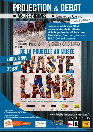En Vallées d’Ax, le réseau de lecture de la Communauté de communes propose lundi 3 novembre prochain au cinéma d’Ax-les-Thermes une soirée débat autour du film Waste Land, de la poubelle au musée, de Lucy Walker.