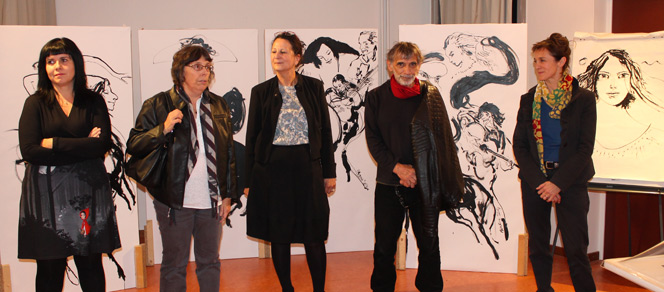 Etaient présents, Edmond Baudouin, Pascale Canal, conseillère municipale chargée de la culture, Maryline Lambert, directrice de la bibliothèque municipale de Foix, Michèle Ginoulhiac, professeur d’arts plastiques du lycée Gabriel Fauré de Foix qui représentait Art’riège et l’association La Galerie et Patricia Pailleaud, responsable de la programmation cinéma à l’Estive.