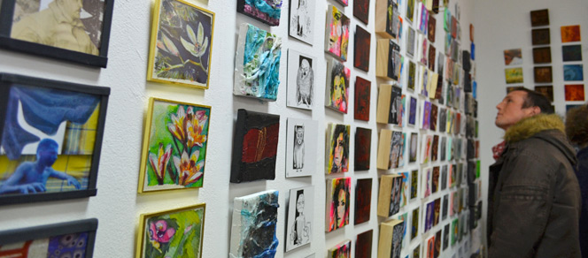 Cette 3e édition des Cent Centimètres Carrés voit la consécration des fameux petits formats de 10x10 cm exposés à la Galerie du Philosophe du Carla-Bayle.