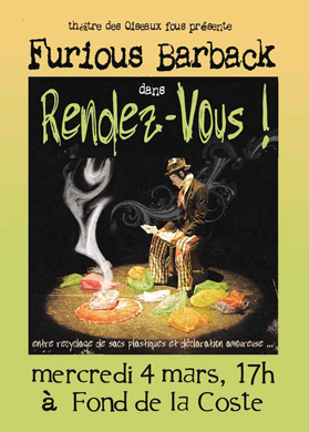 Les résidences d’artistes redémarrent à Fond de la Coste, chez Suzy et Claude d’Un Kilo de cirque. Mercredi 4 mars à 17 h, Fond de Coste et le Théâtre des oiseaux fous présentent «Furious Barback» dans «Rendez-vous».