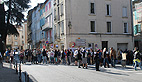 L’ambiance était décontractée, le soleil brillant sur la cité comtale sans le moindre souffle de vent. Un accordéon jouait « la Carmagnole » et la présence policière réduite au strict minimum pour observer le rassemblement.