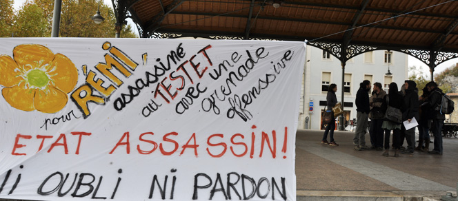 Les violences policières ne datent pas d'aujourd'hui mais elles atteignent un tel paroxysme qu'il faut les dénoncer. En cette journée de désobéissance civique nous allons planter un arbre, un frêne (Fraisse signifie frêne en occitan) dans le jardin et placarder des affiches montrant les armes qui sont utilisées dans les manifestations. Cette arbre est symbolique, car Rémi était défenseur de la nature».