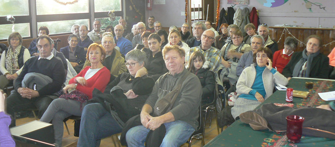 Camilha Bilhac-Lassalle de l’institut d’études occitanes à Pamiers a relaté avec brio les traditions, contes et chants de cette fête très populaire qu’est Noël. C’est avant tout une fête religieuse qui marque l’entrée dans une nouvelle année liturgique. Elle est précédée de l’Avent, une période de 4 dimanches pour chacun desquels on allume une bougie.