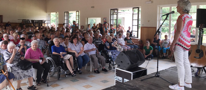 Et puis, pour conclure l’après-midi, en apothéose, un superbe concert donné dans une salle polyvalente de Combelongue archicomble, par Nicole Rieu accompagnée de son fils Julien à la guitare en présence de 300 personnes.