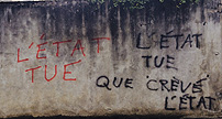 «Etat Assassin», «L’Etat tue», «Que crève l’Etat», «Stop aux mensonges d’Etat» ou encore «Flics assassins»…...