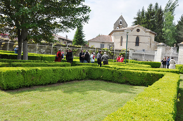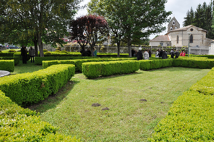 C'est en bordure de la route nationale dans le village de l'Aiguillon que Catherine Robin, animatrice du patrimoine, a accueilli les visiteurs, tous curieux de connaître l'histoire de ce jardin «extraordinaire» à l’emplacement improbable et aux contours mystérieux: l'ensemble des parterres sont délimités par des buis, des érables ou des tilleuls scandent les espaces, les massifs s'organisent en direction de petits bassins alimentés par des jets d'eau et bien que le concepteur ait cherché une certaine régularité, il n'y a pas vraiment de symétrie.
