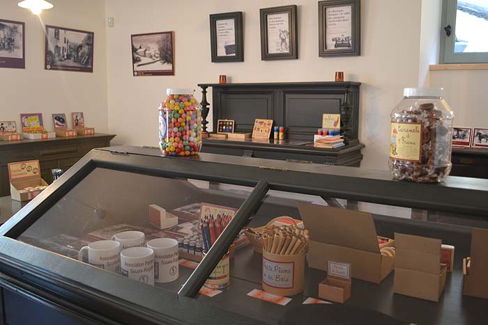 Un long travail (plus de 7 ans!) d’études, de recherches, d’inventaire, de dossiers, puis deux ans de travaux, permet désormais de retrouver au sein de cette Boutique des Colporteurs toute l’ambiance d’une boutique de la fin du XIXe siècle et de partir sur les traces des colporteurs, depuis des boîtes d’épices ou de bonbons aux noms évocateurs jusqu’aux livres comptables et autres factures qui ont été miraculeusement préservés.