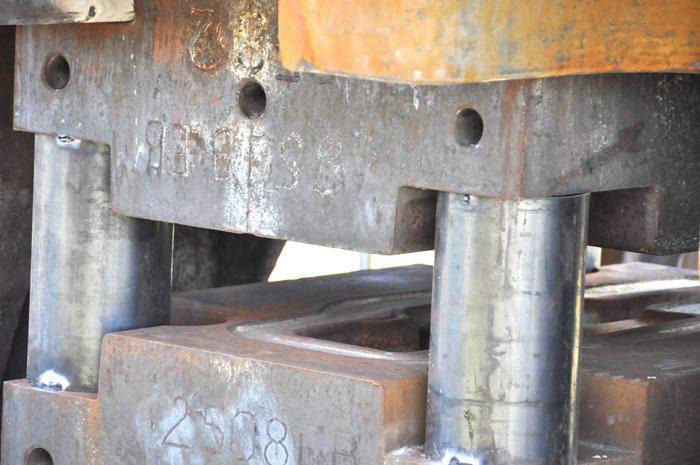 «Il était posé sur la chabotte, un ensemble de 3 masses d'acier d'environ 300 tonnes dans une fosse remplie de mâchefer et de plateaux de bois qui avaient une fonction d’amortisseur. Quand la masse de 15 tonnes tape, ça fait de terribles vibrations, il faut amortir le son et le choc… ils étaient cinq sur cette machine, se souvient André et pour éviter que la pièce ne colle à la matrice l’un d’entre eux jetait une poignée de sciures et du gas-oil. Ce pilon a fait son temps en 3/8, il y avait du travail à l’époque, on travaillait beaucoup sur la fabrication des pièces de camions et des pièces aéronautiques déjà!»