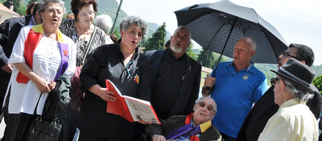 La cérémonie s'est poursuivie avec les dépôts de gerbes puis le dévoilement d'une plaque commémorative par Jean-Pierre Bel, Nathalie Marthien, Jeannine Garcia et Ramon Diego Caldéron. Après l'hymne des guérilleros, le chant des partisans et le Hienno de Riego repris en cœur par les anciens combattants, tous se sont retrouvés à la mairie pour le traditionnel verre de l'amitié. Une amitié qui a ici une signification particulière.