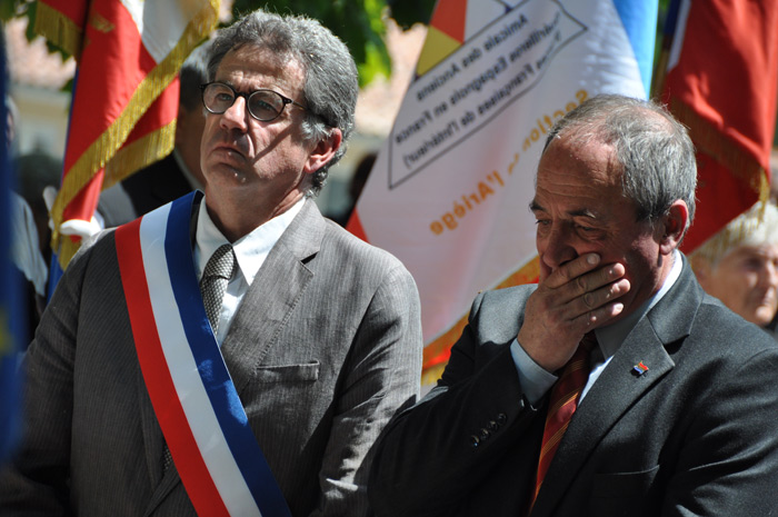 Puis vint le tour des nombreuses prises de paroles, devant un parterre de personnalités parmi lesquelles Jean-Pierre Bel, président du Sénat, Nathalie Marthien, préfet de l'Ariège, André Montané, vice-président du Conseil Général, Marc Carballido, vice-président du Conseil régional et de nombreuses associations d'anciens combattants.