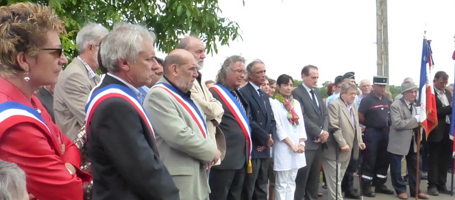La cérémonie, honorée de la présence de Monsieur le Sous-préfet, Frédérique Massat et Alain Fauré députés, Marc Carballido Conseiller régional, André Montané conseiller général, de Messieurs les représentants des corps institués, des Maires de la Communauté des communes et d’un ensemble de porte-drapeaux aussi fiers qu’heureux de ce moment de partage et de mémoire, a été aussi digne que chaleureuse et a débuté par une minute de silence en l’honneur d’Emile Bustamente, résistant espagnol de la première heure disparu cette semaine.