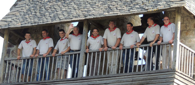 14 membres font partie de cette action dynastique. Cette tradition ancestrale qui se transmet de père en fils est très dangereuse et nécessite de la méthode et une confiance absolue entre les tourneurs. Ces 14 hommes doivent se relayer, cadencer leurs mouvements et respecter le protocole qui est en partie de taper sur l’épaule gauche de son voisin pour aller à gauche et sur l’épaule droite de son autre ami pour aller à droite, il vaut mieux «chausser ses cluques», éviter de bayer aux corneilles et surtout savoir distinguer sa gauche de sa droite!