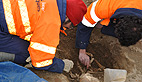 Entre pelleteuses et bulldozers, une poignée d’archéologues de l’Inrap (Institut National de Recherche Archéologiques Préventives) manient le pinceau et le scalpel pour exhumer des squelettes vieux de plusieurs centaines d’années.