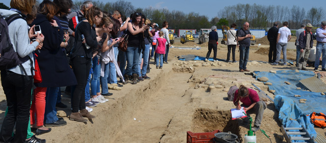 Les fouilles préventives entamées depuis cinq mois prenant fin le 27 avril prochain, cette journée de libre accès au chantier représentait la seule possibilité pour le public de parcourir le site antique et médiéval mis au jour par l’équipe de l’INRAP, avant que les travaux de construction du complexe commercial ne reprennent, sous la maîtrise d’ouvrage de ADIM Sud Ouest.