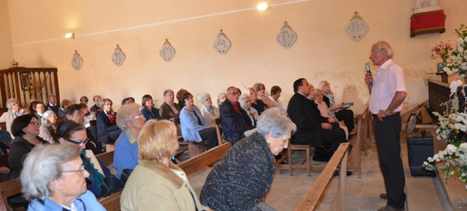 Après les mots de bienvenue du maire Philippe Alibert, les remerciements de M. l’Archiprêtre de Mirepoix David Naït-Saadi pour l’intérêt porté à ces objets patrimoniaux et la présentation du projet par Dominique Raymond, adjointe au sein du conseil municipal, Jean-Louis Attané, délégué départemental adjoint pour la Fondation du Patrimoine, a expliqué le rôle du mécénat et celui des dons spontanés pour permettre la restauration des tableaux.