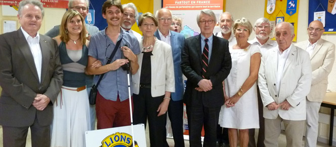 Sept Lions Club Ariégeois remettent une canne électronique à un jeune étudiant de Ganac