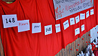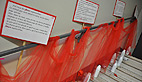 Derrière ce titre presque poétique « 148 fleurs pour 148 femmes », c’est le nombre de femmes tués par leurs conjoints en 2012, soit une femme tous les deux jours et demi. Pour les filles de Regards de Femmes cette installation teintée de rouge et blanc doit inciter le public qui fréquente le mercredi la MJC à se sentir concerné, peut-être même oser mettre des mots sur des actes, car en parler c’est aussi déculpabiliser.