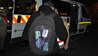 Aux alentours de 19 h le véhicule une fois chargé est prêt à marauder. «Il y a la nourriture et les boissons chaudes, des gants et des bonnets, mais aussi des kits hygiène et quelques couvertures» précise Damien qui fait ses premiers pas au SAMU social.