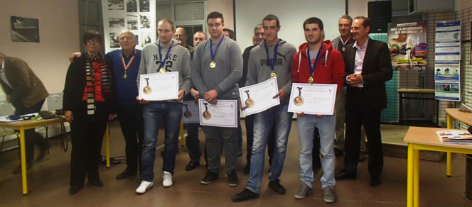 Les quatre représentants de la société Meilleur ouvrier de France ont remis les médailles départementales aux différents lauréats qui se sont illustrés à différents niveaux : sur le plan départemental comme Valentin Lévêque médaille d’argent ; sur le plan régional comme Ludovic Bistos, Benjamin Hernandez, Jérémy Negret médailles d’or, Sébastien Dutrey, Matthieu Gilibert médailles d’argent. Quant à Louis Rizzola médaille d’or sur le plan national, c’est au Sénat qu’il ira bientôt la chercher.
