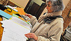Dans le froid d’un matin de janvier Catherine Saint-Martin, conservateur des Antiquités Objets d’Art, réalise des relevés dans une petite église de la Barguillère.