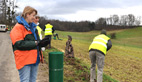 Après avoir creusé des rigoles, planté des pieux, ils ont déroulé une barrière temporaire de protection sur plus de 200 mètres. Grâce à ce matériel léger facile à installer et à enlever, les batraciens se heurtent à la barrière qu’ils sont obligés de longer et empruntent une buse pour traverser la route.