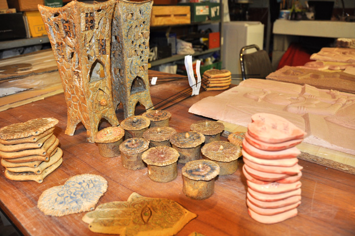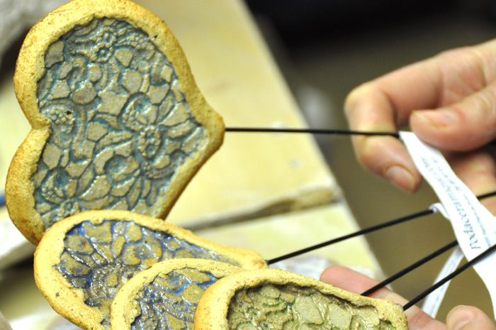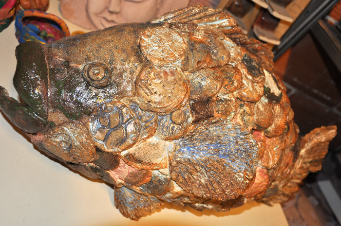 Dans son atelier des bustes ou de plus petites pièces destinées aux dépôts ventes comme ces mains de Fatma, ces photophores ou ces petits cœurs, Saint Valentin oblige: «Montés sur tige, ils peuvent rentrer dans la composition d’un bouquet de fleurs pour le personnaliser… mais mon thème récurrent c’est le poisson car je suis passionnée de mer et de plongée sous-marine»