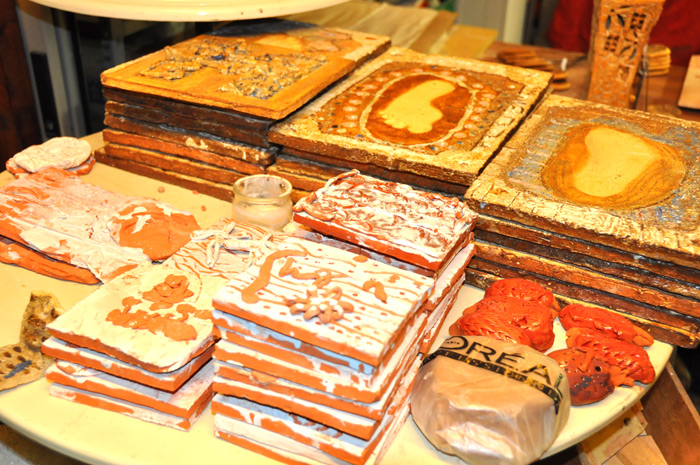 Chacun d’entre eux à laissé son empreinte de pieds sur une dalle d’argile, sur laquelle ils ont apposé leur prénom. Nous travaillons également avec d’autres groupes sur la réalisation de carreaux qui viendront dans quelques semaines décorer la façade de l’école… c’est intéressant dans la mesure où il y a de la réflexion en amont, de la création et ils en voient ensuite la finalité»