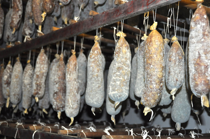 Toute sa charcuterie est fabriquée à partir de ce porc lourd du pays issu des meilleurs animaux sélectionnés après une croissance lente et élevés par les producteurs du département de l'Ariège.