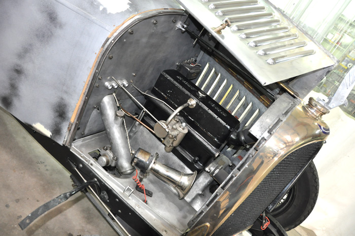 «La mécanique (moteur sans soupapes de type Knight) a été restaurée par un spécialiste des moteurs Voisins installé dans le nord de la France, l’électricité reconstituée par un passionné de mécanique électrique, ancien mécano à l’Aiguillon, l’intérieur a fait l’objet d’une totale réfection par Franck Poyeton, un créateur installé à Labastide de Bousignac, féru de garnissage automobile et la tôlerie a fait l’objet d’un travail de qualité dans l’atelier de Manuel Avalo (AB Automobile à Mirepoix).