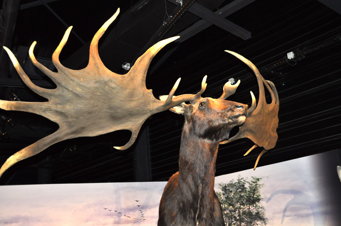Un plantureux cerf mégacéros dont les bois pouvaient faire à l’époque plus de 3,50m d’amplitude accueille les visiteurs: «Nous avons pris le parti de choisir 4 animaux emblématiques de cette période et leur taille est totalement à l’échelle» précise Cécile Sarrail, responsable de la communication